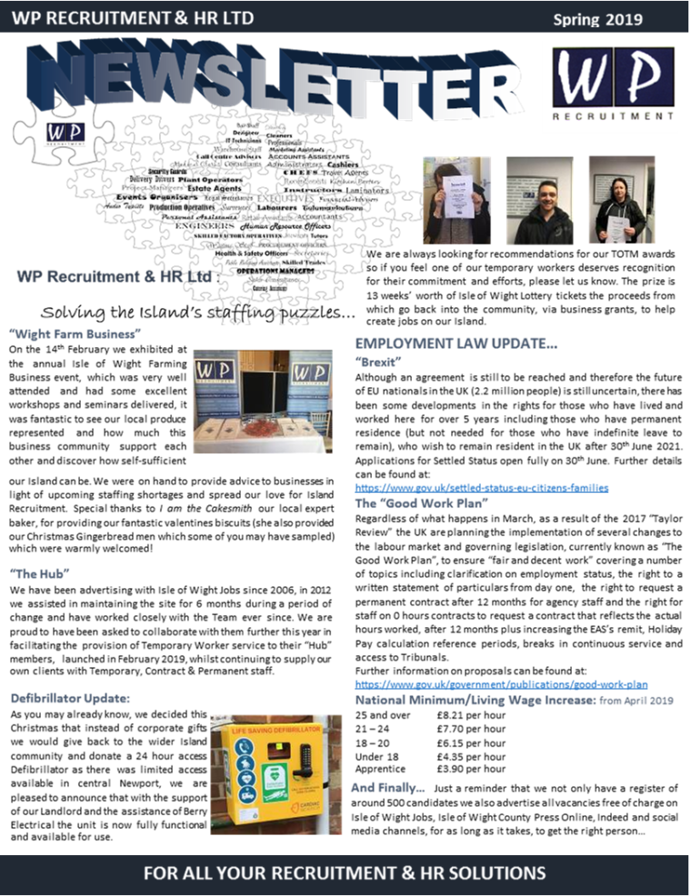 Newsletter Spring 2019 : Wight Farm Business/The Hub/ Brexit/ The Good Work Plan